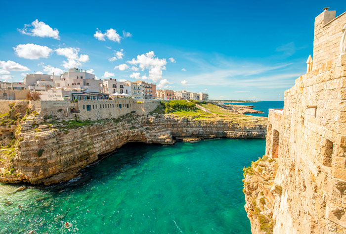 A pochi km a sud di Bari, si trova questo piccolo paesino situato interamente su una scogliera. Passeggiando tra le vie del borgo antico si giunge alle due balconate, luogo dove è possibile ammirare lo spettacolo del tramonto riflesso sulle acque cristalline del mare. Quale posto migliore per una proposta di matrimonio?