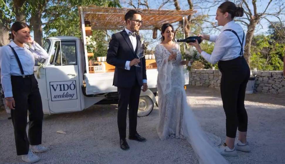 Dal fascino vintage dell’Ape Car all’eccellenza nel servizio, Aperino Vidò è la scelta che combina eleganza e originalità, per stupire i tuoi ospiti e lasciare un ricordo indelebile. Brinda al tuo amore con stile, circondato da amici e familiari in un momento che celebra la gioia e la condivisione.