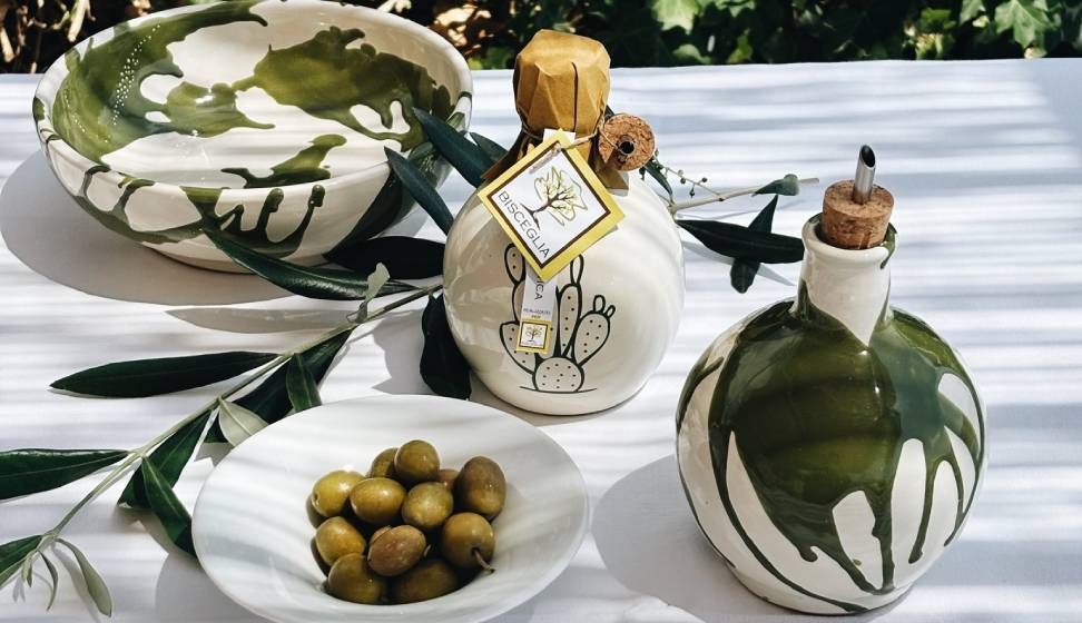 - orci in ceramica pugliese: modellati e decorati a mano, questi orci diventano scrigni preziosi per il nostro olio extravergine d’oliva, simbolo di prosperità e autenticità;