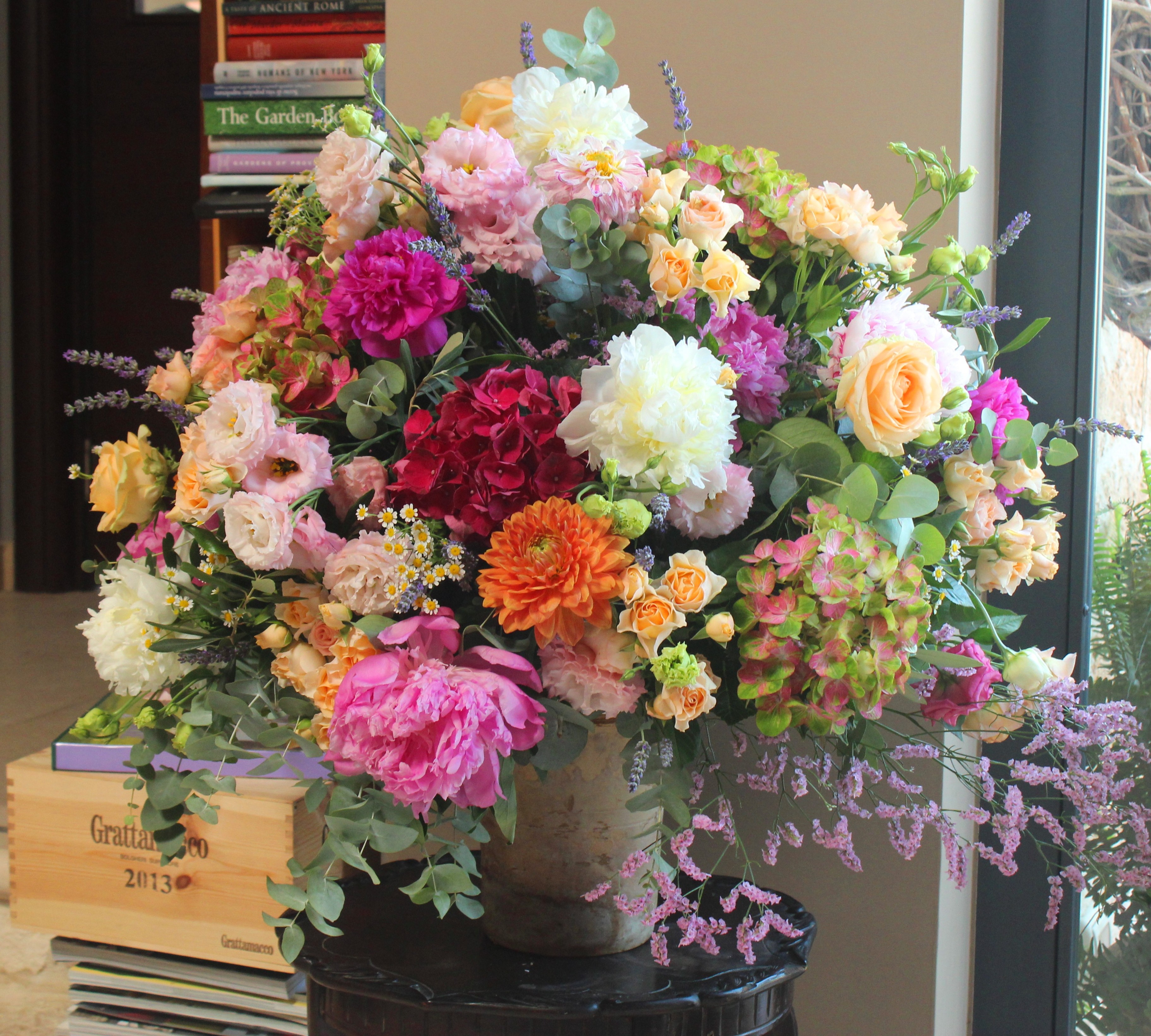 L’allestimento realizzato è stato un connubio di stili, tra il British Vintage e l’Italian Wedding Style , accompagnato da diverse tipologie di fiori (peonie, ortensie, rose inglesi, roselline a ciuffetto, dalie,lavanda, matricaria) di tonalità di colore dello stesso cerchio cromatico in armonia e contrasto tra loro.
